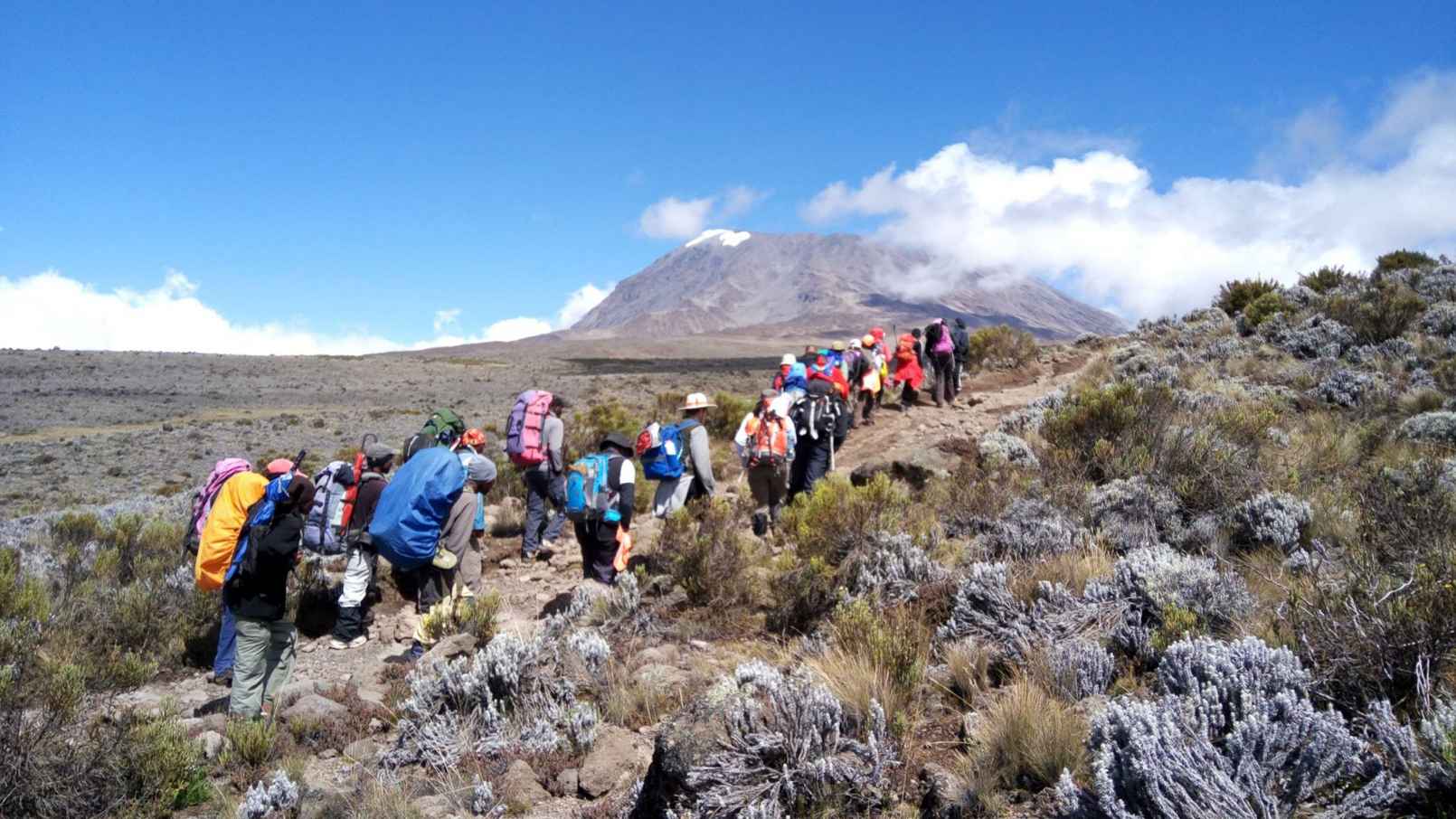 The morning hike is a steady ascent up to the Second Cave with superb views of Kibo and the Eastern ice fields on the crater rim.