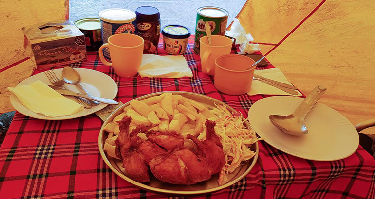 Because so many climbers experience a loss of appetite at altitude, our head chef has developed special menu plans Explore Tanzania Hikes & Safaris are appealing, healthy, and filled with all the energy you need to make it to the summit. By default, our meals include fresh fruit and vegetables every day. You will have fresh meat for the first part of the trek and on the southern routes where it is feasible we resupply the group at Karanga Camp.